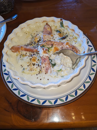 ●キノコとベーコンのたっぷりチーズリゾット ベーコンがゴロゴロ入って、メニュー名の通りチーズたっぷり。 ●イカとホタテの明太子クリームパスタ イカやホタテの味の出たクリームソースが大好き。ラストはサラダバーのフォッカッチャに吸わせて、うまうま。お行儀悪いですが。 ●サラダバー 他店舗さんより、種類が少ない気がします。ほぼカラのボールも多いし、乱雑です。 ●ドリンクバー こちらも、ソースやシロップ、シナモンパウダーなど、残り少なかったり、かたまってたり、口が汚れてたり、氷が溶けきって水になってたり。