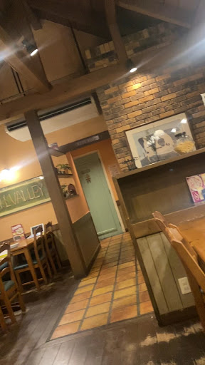 私たちは、メイン料理に、ハッピーミックスピッツァ(唐揚げ、ペパロニ、ツナマヨ、コーン)と、きのことベーコンのたっぷりチーズリゾットを注文しました。 デザートは、クッキーショコラと、りんごのシブーストと、フレッシュ苺の生プリン(+50円)と、ミニソフトサンデーの苺ソースを選びました。 他に、ジョッキワイン(白)500円 を注文しました。 お料理が届く前にサラダバーで好みのサラダを選んできました。今日は、ゆで玉子を和えたマカロニサラダと揚げた南瓜がなかったのは残念でしたが、シーチキンのパスタサラダやにんじんのマリネなど、相変わらず美味しかったです。いつもはグラスワインなのですが、今日はジョッキワインに初めてしましたが、ウーロン茶を飲まなかったので、あっさりと全部飲めてしまいました。 リゾットは、胡椒が、かかりすぎでチーズの風味を壊している気がしました。ピッツァは、豊橋の他の2店舗に比べ、ピッツァソースがジューシーで好きです。もう少し生地に焼きがあると好みです。 デザートのりんごのシブーストは、1年ぶりだったので、初めて見た商品でしたが、とても美味しかったです。これは是非とも選んでいただきたいです。 ハッピーバレー小向店は、スタッフも親切だし、サラダバーのコーナーも小さいけれど、美味しくて良いと思います。 スタンプカードもスタンプが500円でひとつなので、ふたりで行くと、すぐに貯まります。 ランチタイムは、お子さんが走りまわったり、若い女性がお友達とおしゃべりしながら、サラダバーのトングを持ってコーナーで長居するのを、どうかなと思ってしまったこともありましたが、ディナータイムは、とても静かに落ち着いて食事ができます。接客と味は、豊橋の3店舗の中では、断然良いと思います。ピッツァソースのジューシーさに他店舗と比べて驚いたのが、このお店に行くようになったきっかけでしたから。 りんごのシブースト、ここに行ったら、食べてみてくださいね。