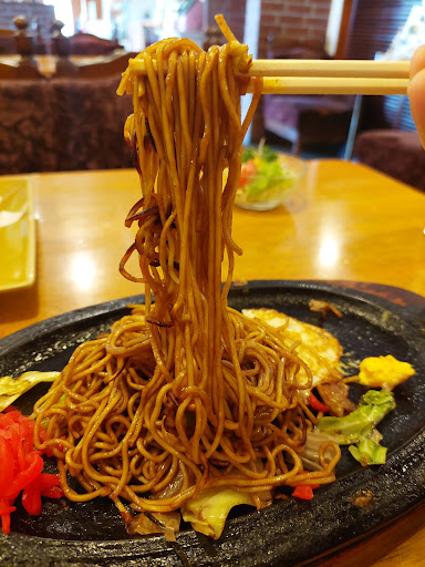 此方のお店は「鉄板焼きそば」が絶品!細麺で所々が熱せられてパリパリに。目玉焼きがこれまたGOOD! モーニングは14時までなので、+120円のAモーニングと焼きそば単品の組み合わせはお得な注文方法です(^-^)