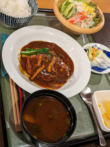 丁寧に盛り付けられた感じのお料理です。 公共施設の食事なので、そこまで期待していなかったが、結構美味しい! サラダはボリュームたっぷり。 メインのハンバーグは家庭的な料理の美味しさ、ふんわりとした優しい味と食感。 こちらのメニューを毎日考えている人は、かなり料理上手だろう。 880円という料金と限られる予算で最大限に美味しく作っている感じ、何と表現して良いのやら。 ご飯はこのエリアしては少なめですが、中年のおじさんにはちょうど良い。