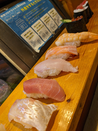 イカは、切れ込みに醤油が、よく馴染んで歯応えのある食感で、海老は、プリッとしていました。いくら巻きは、プツプツとした食感が楽しく、鉄火巻は、芯となる鮪の赤身が飛び出ていて食べ応え十分で、一人前で様々な味を、堪能できました。