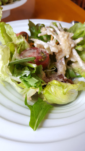 Read more2024年10月19日、土曜日、午後1時半頃、ふたりで初訪問。 当日30分前にランチの予約の電話をいれたところ、とても元気な女性の声で、「午後3時にお店を閉めてしまうけれど、それでも良かったら。」と、気さくな感じで、予約を受けてくださいました。 駐車場は、お店の前に、6台分、ありました。 入店すると、感じの良い60代くらいのご夫婦が迎えてくださいました。 ふたり掛けテーブルが4卓、4人掛けテーブルが2卓ありましたが、テーブルは、くっつけたり、離したりできます。カウンター席も2席くらいありました。 私たちは、入り口に近いふたり掛けテーブルに着いたのですが、奥様が、隣りのテーブルをくっつけて広くしてくださいました。 私たちは、メニュー表から、本日のランチを選びました。 これは、 魚料理or肉料理 ごはんorパン 本日のスープ 前菜 サラダ 選べるデザート コーヒーor紅茶 で、税込み1980円のコース料理です。 私たちは、其々魚料理と肉料理を選び、パンは切れているそうで、どちらもごはんにしていただき、選べるデザートは、3種類から、モンブランとチーズケーキ(あと1種類は、コーヒーゼリーとのこと)を選び、ドリンクは、ホットコーヒーとアイスコーヒーにしました。 先客がいらっしゃったので、最初のサラダが届くまで、23分待ちましたが、その後は、1品ずつスムーズに提供されました。 サラダのドレッシングから、手づくりの味で、全てのお料理に、創意工夫と、盛り付けの美しさを感じました。ご主人が、ひと品、ひと品、丁寧に作ってくださったことが伝わってきます。カジュアルなフレンチを食べている感じです。ガムシロップを入れるガラスの小さなガラスの器や、箸置きなども含めて、美的センスを感じました。 味の評価値は、ふたりとも4・3くらいで一致しました。初めてのお客さんにも親しみやすいご夫婦、肩の力を抜いてコース料理を楽しめるところなど、評価値5をつけたいです。 野菜が多く、かぼちゃのスープは、絶品。 お店を出たのが、ジャスト1時間後だったので、時間にゆとりがある日に向いています。 量的にも、満たされます。 肩肘張らない、...