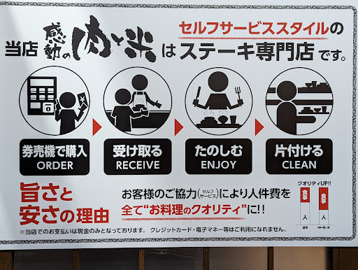 店員さんは3名しか確認出来ませんでした。ほぼセルフ·平日ともあれば充分かも。ご飯を提供してくれる女性店員は、定型文しか発せず、こちらの質問は答えてくれません。 コスパがいい分、細かい事を要求する方はお奨め出来ません。お肉とご飯は美味しいので、それだけを楽しむ方にお奨めです。