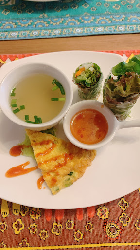 Read moreアジアン雑貨が展示されていてモーニングもランチもあります。カウンターには常連客がママさんと楽しそうに会話されていて4人がけテーブルが3つあり壁に昭和歌謡のレコードジャケットが飾ってあり懐かしい昭和歌謡曲が流れています。プレートランチ1200円で前菜と大皿にサラダデザートパッタイにメインがカオマンガイかガパオライスが選べます。ドリンクもついていていろんな飲み物が選べま...