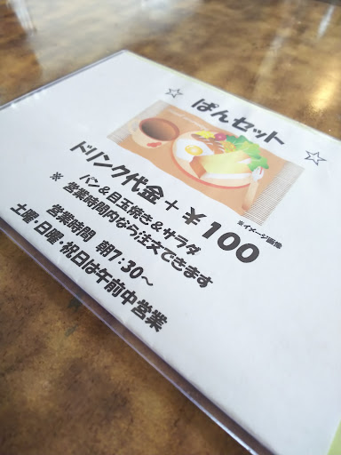 以前の投稿↓ 営業時間の確認を追記します。 ●土曜日・日曜日・祝日は7時30分~12時まで ●月曜日~金曜日は、7時30分~17時まで。 以前の「ぱんセット」のメニューに8時~と表示されてたみたいですが、お邪魔したら「うち、7時半からやっとるよ~」と。 メニュー作り直されたそうなので、ご参考まで。 一日中あるぱんセット付きのコーヒーチケットもあります。 毎回ぱんセットで頼まれるなら、こちらの方がよりお得なチケットです。