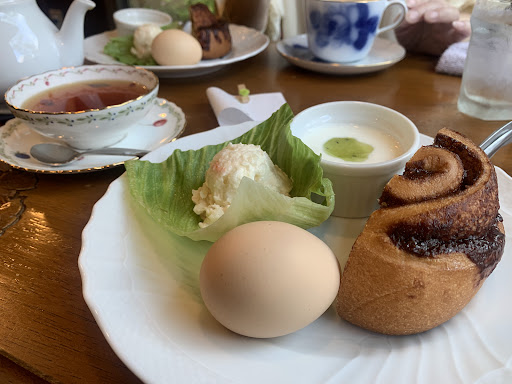 私はレギュラーモーニングをオーダー(ドリンク代のみ)。パンは菓子パンの何か(お店の方のチョイス)が出るとのことでした笑 私と友人にはシナモンロールパンの半分のものが出ましたが美味しかったです。喫茶店なのにお店でいろんな種類のパンを焼いているってすごいです♪ レギュラーモーニングには、ヨーグルト、ポテトサラダ(レタスの葉っぱ付き)、ゆで卵(固茹ででもなく半熟でもなく丁度良いです!)、パンが付きました。ドリンク代のみです。 私は紅茶(プルマンブレンド)550円を注文しましたが、ティーポットサービスは嬉しいですね♪ どれもとても美味しくいただきました!