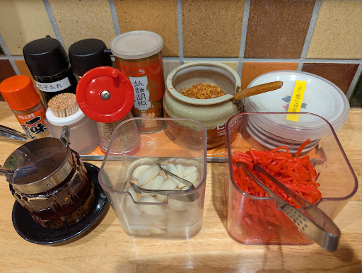 Read more友達に誘われて初めて行きました。 店員さんはとても丁寧で、席との仕切りも高い、ニンニク等の薬味などがたくさん揃えてあって、とてもいいと思いました。 私は牛骨ラーメンが苦手なので、赤辛鶏じゃんラーメン中辛、友達は牛じゃんラーメンを注文。二人でシェアするのに餃子二人前と、唐揚げ5個も注文しました。