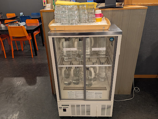 タブレットからの注文で、初回の注文は、最低でも2人前から可ですが、例えば、セットと単品の組み合わせでも大丈夫らしく、その後の追加なら、1人前の単位で注文できて、お冷は、セルフでレジ前にあり、お手拭きやお箸は、机の引き出しに入って、名物の滑りやすい床は、誇張でなく、想像以上にツルツルで要注意でした。