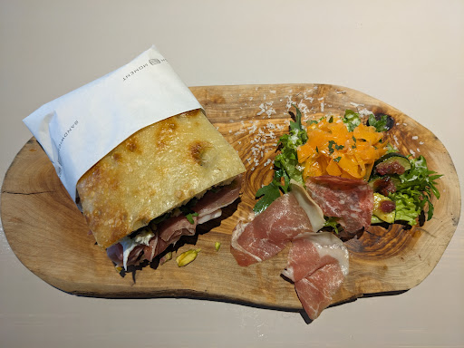 サンドイッチはとにかく美味しい…!具材がたくさんなのですがケンカすることなく、複雑ながらも統一感があります。生ハムの塩っ気を軽減というよりもうまく活かしてくれています。 モルタデッラのサンドイッチは少し生ハムよりも塩っ気が少なめですが、ソーセージらしさが出ており違う系統で楽しめました。 パンは噛みごたえが十二分で、歯科治療中の私にはいくぶん困難が生じ笑、食べ終わる頃にはアゴもだいぶお疲れ。 一人前だとかなりのボリュームですが、摂取カロリーとアゴの運動による消費カロリーとが相殺されて、ゼロカロリー!と勝手に納得しています。