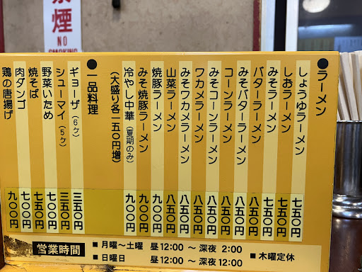 One of the iconic shops in the area, run by a group of aunties and uncles. The ramen is basically a variation on the same base - you just either get a dollop of miso in it or not, a chunk of butter or not, etc. All of them include a mountain of sprouts. It seems like I always get the yakibuta ramen, which comes with three thick slices of cold chashu - make sure you warm them through in your soup. Noodles are normal thickness, somewhat wavy, easy to slurp. The shop is very old though, so if that kind of wear and grime is not your thing,...