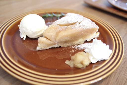 プリンもパイもクセがなく、新鮮な風味。 コーヒーは中煎りを頼んだけれど、苦味は強め。スイーツの甘さとよく合うコーヒーになって、とてもら美味しい。 マジでうますぎにゃん!!!