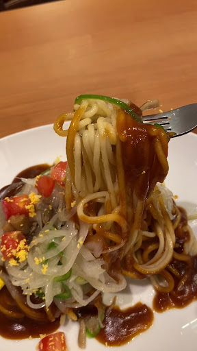 I had the “Miracle Spa” at Ciao near Toyohashi Station. It was a generous portion with perfectly chewy thick noodles and a spicy ankake (thick sauce) that packed great flavor. The mini salad was fresh and complemented the dish nicely. Highly recommended for anyone trying ankake spaghetti for the first time!