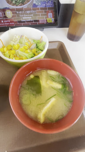 お昼時ちょっと前に利用しました。 お昼時なのに日本人の女性と外国人の2人。 私たちの他に次々お客さんが入ってきててもいらっしゃいませの声がかけられないほどバタバタしてるのが分かりました。 レジ待ちも何人かいて、食べ終わった食器もテーブルに置いたままがいくつかあり、提供が遅いのか?途中でキャンセルして帰るお客さんもいました。 時々、日本人の女性が外国人に苛立って声を荒げて指示してて、店内のお客さんも厨房を凝視していました。 30分くらいしてやっと出された牛丼も味は普通としてもぬるーく、がっかり。 帰る時にはドライブスルーの列が駐車場の入り口まで続いてた。 昼時前の時間帯でバタバタしてるのに、この後の時間も2人体制でやってるのはどうよ?と思うほど。 安い、早い、美味いが牛丼と思ってたけど、それは一昔前の話みたいです! もちろん2人とも一生懸命働いてるとは思いますが、店内に丸聞こえで苛立ちをぶつけられてる外国人の従...