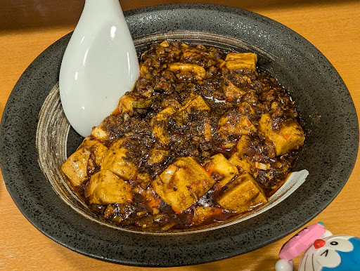 麻婆豆腐は、大将にオススメを聞くと、麻婆豆腐!と気持ちよく即答したので、迷わず注文、運ばれてすぐフワッと香りが広がり、色は黒で、見た目の通り花椒が効いて、食べると痺れるよーな辛さが程よく、具は、挽き肉がゴロゴロしていて、豆腐は熱々で、刻みネギの食感がよく、一緒に炒飯が欲しくなる味だと思いました。