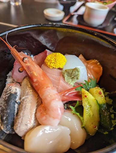 Read more今回はランチで日替わりを頼みました。 美味しかったです♪ かき揚げは、さつまいも•えび•なす などが入っていて揚げたてサクサク🍤 他に、もずく酢と揚げの味噌田楽、ほたて。 茶碗蒸しは出汁がきいてて他店には負けてないと思います❗️ 主人は刺身定食。 今日はランチですが夜も利用したことがあります。 おすすめはやっぱり刺身。 新鮮で美味しいです😋 女将さんは気さくで親しみがあり元気な方で話しやす...