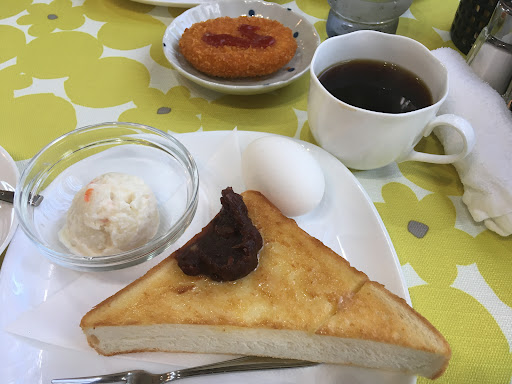 Quiet place to relax during waiting time at « higashimikawa driving licence center ». I had a very good « morning set » with ogura on toast, croquette and...