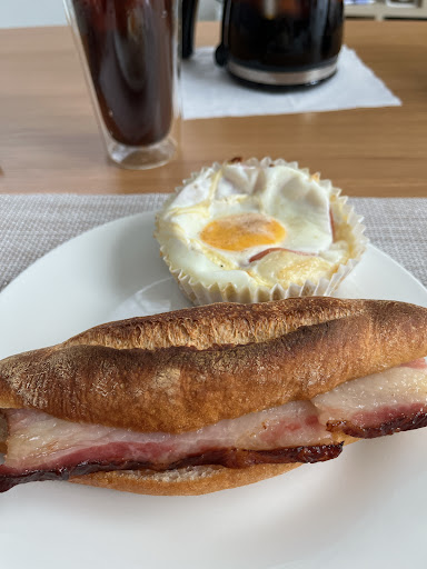 今日はフランスパンに、厚切りベーコンが挟んであるシンプルなパンと卵がのってる朝ごはんにピッタリのパン!