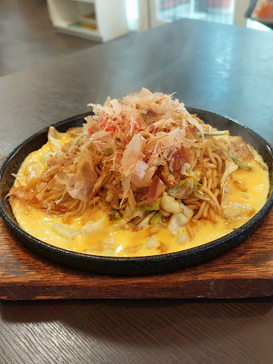 焼きそば定食…薄い卵焼きが敷かれた鉄板の上に鰹節がまぶされたいい感じで出てきました! 味も鉄板焼きの店で食べるのと遜色ないくらい美味しい!味はこってりめだけど くどくはないです。そんな焼きそばをご飯で食べる…炭水化物をおかずに炭水化物を食べる… 素敵です。ご飯の量は小さめの茶碗に山盛りです。女性だとちょっと多いかもしれません。 この店の良い所は定食と単品の差額が全くない事です。 焼きそば定食(700円)に対して 焼きそば(500円)➕ご飯(100円)➕味噌汁(100円)です。