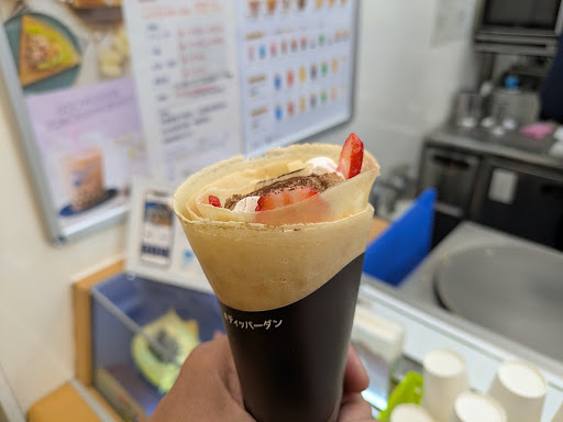 Read more初めて購入してみましたが、あまりの不味さに驚いてしまいました。。絶句です、、 子供のおもちゃで作れたようなクレープ。。生地は味の無くなったガムのようでクリームはフレッシュさゼロの人工的(たくさんの人工的なクリームが山積みでした) 中のチーズケーキはパッサパサ。 美味しいクレープ屋で普段食べているので天と地の差でした。 仕方なくふたくち食べてから捨てるハメに。全てが人工的でした。 スタッフ1人のワンオペで待ってまで買っ...