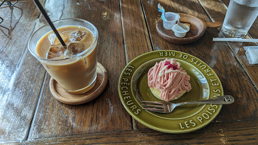 Read moreケーキが美味すぎた。 バイクで伊良湖ツーリングの帰りに喫茶店どっか寄ろうかとなってレビュー高評価で来店。 年末なのに暖かい日でアイスコーヒーを注文。 とても美味しかったです。 写真のあまおうモンブランケーキを合わせて注文しましたがめちゃくちゃ美味しかったです。 お店もお洒落でとても雰囲気良く地元の方達に愛されている名店だと肌で感じました。 プロの写真家?の展示会も奥の部屋でやっててたまにツーリングで通り過ぎる阿智村の良さにも気付かされました。 今度は阿智村目的にツーリング行...