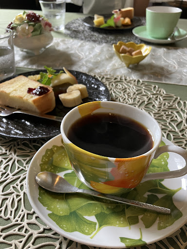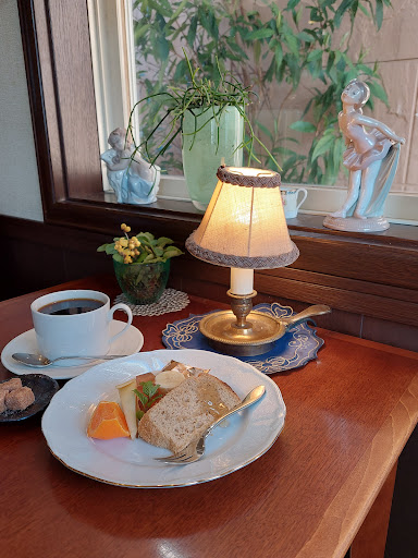 メニューは飲み物のみでした。 オリジナルコーヒーを注文したら、なんと、プレートにたくさんのデザートとジャムトーストまでがサービスでついてきたのでびっくり‼️大満足でした。品のあるママさんの笑顔と、心地よい光の入る店内で、まったり長居してしまいました。ひとりできても、寛げる...