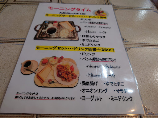 モーニングは2種。レギュラー(ドリンク代+0円)、セット(ドリンク代+350円)。それぞれをオーダー。 レギュラーでも十分な満足感。ホットサンド、サラダ、ゆで玉子、ヤクルト、このラインナップでドリンク代+0円!これが本来の喫茶店モーニングですよね~ ボリュームを求める方にはセットがオススメ。ジューシーで昔ながらの唐揚げ、オニオンリング、ヨーグルトまで付いていてランチでも成立しちゃいそう(^^)