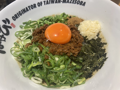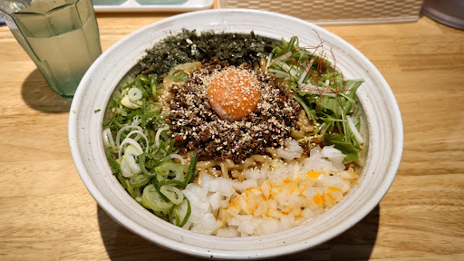 Read moreOpenから暫くたつので色々落ち着いたかと思い試しに行きました。 先ず、駐車場が狭く止め難い。駐車場に吸殻入れが置いてあったのですが、水が入ってないのか怖いくらい煙が立ち上がり凄い臭いさせてました。 入って券売機があるのですが、初めてなのでメニューもよく分からず、取り扱いもよく分からない…もたもたしていたら次の人が入って来てしまい、焦って定番のまぜそば注文しました。レシートが無駄にデカいです。 男性3人で回してますが、店内は混んでる訳でもないのに、提供時間めちゃくちゃ長かったです。麺茹でて具を乗せるだけなのに何でかと…。 太麺なので、結構お腹一杯になります(主人は普通、私は半麺)。私には結構しょっぱいです。取り敢えずお試しで追い飯貰いましたが、間違えられても嫌だし、ちょっと面倒なシステムだなと思いました。 とにかく食後は(帰宅後も)胃がムカムカして水を沢山飲みました, 有名なお店なので、色々期待して行きましたが、積み上げたティシュや調味料は結構乱雑で、店内見まわして全体的に清潔感は感じられなかったです。 店員さんは、他の有名チェーン店と比べたら全く覇気がありません。 役割分担制なのかお客様優先ではないのか、手が空いていてもボーッとしていて手伝いには回ら...