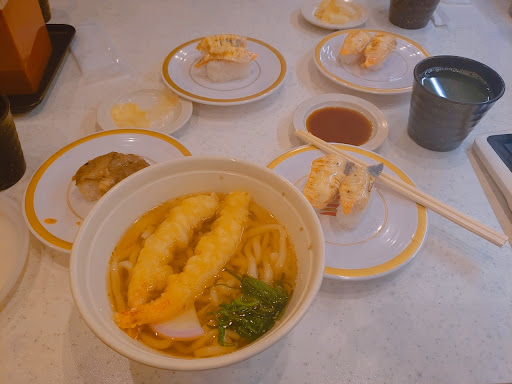 Read moreおばあちゃんの病院の帰りに 寄らせてもらいました🍣 平日の昼時でもやっぱり人が多い。 さすが(’ー’) けどスムーズに入れました😌 今ってレーンが動いてないのね! だからタッチパネルで注文すると 上のレーンに新幹線が来てくれます🚄 子供は大喜び(’ー’) お寿司が昔よりも美味しくて 感激した✊🏻🐷💓 特に茶碗蒸しが美味しくて おばあちゃん2個も食べてたw w w けどその気持ちわかるぅw w w 具だくさんだし、お出汁の味しっかり ぷるぷる〜とろとろ〜で ほんとに美味しかった! えび天うどんの海老も 小ぶりちゃんだけどプリプリで 普通に美味しかった🦐 おうどんのお出汁も美味しかった! お寿司もひとつひとつ美味しく いただきましたっ🙏🏻💕 テーブルの上にお醤油とかガリとか わさびとか置いてあるんだけど、 ちょっと気になる人は気になるかも🥲? けど回転寿司でこのクオリティなら 大満足〜\(^ω^)/ タッチパネルの反応もよいから ストレスなく注文できる! ドリンクも結構大きい🥤 なんなら2杯以上飲むならドリンクバーのがお得だったかも、、 MサイズのコーラとLサイズの爽健美茶頼んだけど、絶対ドリンクバーのがお得だったな〜w w...