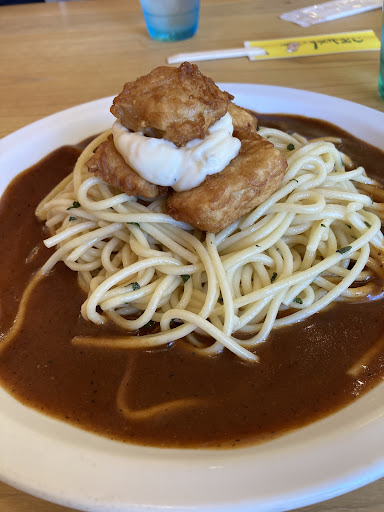 Read moreいつも通りがかる店。駐車場に着くと店員さんが迎えてくれます。店内は清潔で夏色な雰囲気のお店です。カレーライスのお店のようですが、スパゲッティやガパオライスなど他のメニューも沢山あります。 ボリュームもそこそこあり何より料理がとても美味しい。素材の味が生かされてて僕はあんかけパスタの魚フライをいただきました。魚フライにタルタルソースがかかっててサクサクの魚フライがあんかけパスタにベストマッチしてて美味しかったです。 奥さんはガーリックシュリンププレートをいただき、店員さんが気を使って取り皿をすすんで持ってきてくれました。 どんな味かと少しいただいたんですが、ライスの上に乗ってるプリプリのえびがガーリックライスと一緒に食べるとこれはまた絶品!食欲を促進させてくれました。 ランチにプラス200円でフリードリンクもつけられてお得でした。 今度は野菜のカレーライスが食べたいと思いました。週末に行きたい...