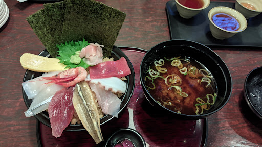 もちろん頼んだのは、マルサ海鮮丼🐟️ お手頃価格の海鮮丼で時間帯を問わず食べられます😋 ご飯は、白米or酢飯で大・普通・小盛りから選択可能です。 酢飯の大盛りをチョイスしました😆 ちらし寿司販売期間中の酢飯は赤酢を使用しています。 あら熱がとられているのでネタに熱が通る心配はありません。 値段の割りにネタの種類も豊富で、あら汁と漬物がついてくるのも嬉しいです😉👍️✨ お酒の種類も豊富にあります。