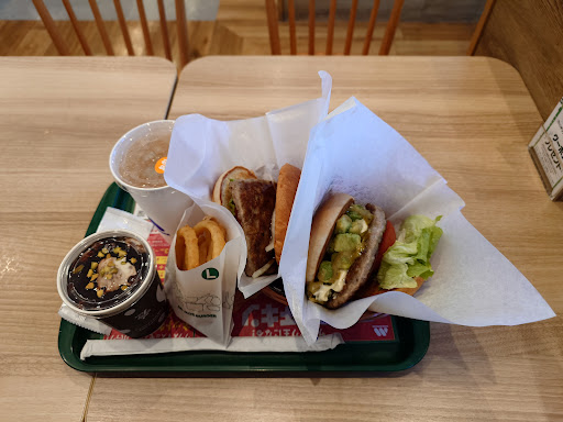 Read moreここにできてから久しぶりに寄ってみました。準地元になりますが、わりと新しい店舗ですのでデザインはまだ古さを感じませんし、全体的にきれいです。外にも椅子が用意されています。中はそれほど広くないので、ソーシャルディスタンスに工夫のあとがみてとれます。今回は店舗限定らしいグリーンバーガーやタピオカフルーツティーなどを注文して店内で食べました。味はそこそこ、量もそこそこ、値段はやはりモスだけのことはあります。店内を流れる音楽はとても落ち着いた雰囲気を演出されるものでいい感じです。駐車場はあまり多くありません。駐輪場は自転車なら6台停められないことはないですが、ちょっと変わったレイアウトです。バイクやスク...