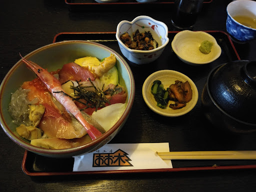 24.11.4 ランチ利用で「海鮮丼」をオーダー。 店構えは派手さがなく、外観から「このお店の質の高さ」を計り知る事は困難。 店内に入ると、まず入口で履き物を脱いで上がります。 店内は板の間で、とても雰囲気が良く、入店した瞬間から「質の高さ」が窺えます。 カウンターとテーブル席が有り、今回はテーブル席。 (相席をお願いされる事も有るので、ここで食事される方は予めご承知置きを!) その時の店内はほぼ満席だった為、料理のデリバリーには少々時間が掛かりましたが、それを帳消しにするだけの質の高い料理が来ました。 海鮮丼に乗るネタ数は多く ネタの量も豊富。 それに小鉢や漬物、味噌汁などが付くので、価格に見合わない海鮮丼です。 (今回のネタは、覚えているだけでも生シラス、マグロ、ブリ、サザエ、イカ、帆立、イクラ、〆鯖、ウニ、サーモン、甘エビ、玉子、キュウリ等々…) 料理を待つ間 メニュー表も見ましたが、料理のバリエーションも多く...