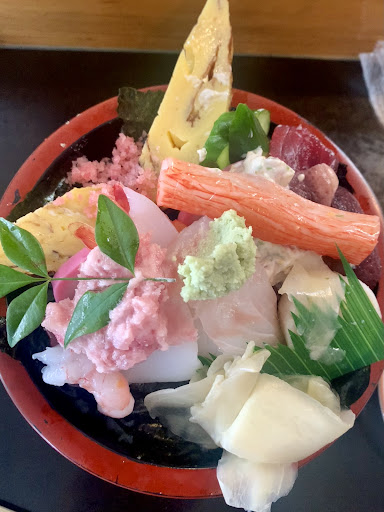 Read moreクチコミで評判のちらしの並(税込1,200円)を注文。大将が「お腹空いてる?」と聞いてくるのもうわさ通り。「はい」と答えたので酢飯が多くなっているようだ。味噌汁も付く。 ボリュームは満点だが、ネタの種類や質は微妙。 カニカマやかまぼこも入っているしタコの頭や桜でんぶも。マグロやエビもまあ普通。今日はハズレの日だったのか。 ちらしの上はネタが豪華らしいが1,800円はちょっと手を出しにくい。