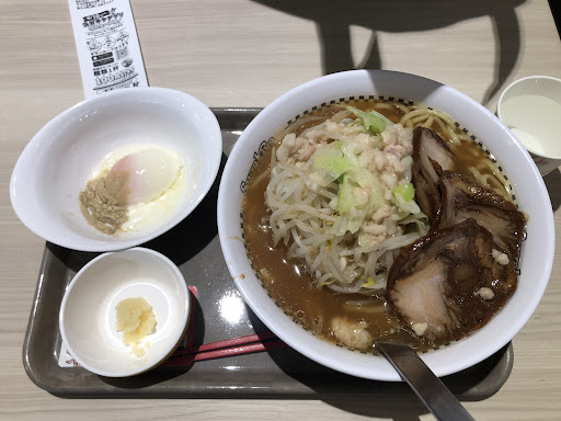 今年は大盛りも対応していた辛くない方のスガ・ジローに ジロー肉マシに半熟たまごトッピング。