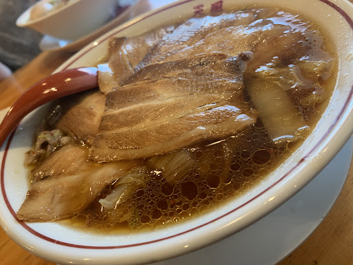 麺はやや硬めのシコシコとしたストレート麺! チャーシューはしっかりとした 噛み応えのあるタイプで煮卵は 絶妙な黄身トロトロ使用! スープは醤油なので割とあっさりと思いきや スープの面にかなり脂が浮いており チャーシューとは別に豚の脂身の スライスが入っているので なかなかオイリーな味わいです! ただコテコテなわけではなく しっかり柔らかくと煮込まれた 白菜も入っており、優しい甘さで バランスが取れていました!