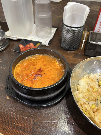 Read more2023年2月、ランチで訪問。 カウンターとテーブル席のお店です。ランチメニューらチゲの定食を中心にオール850円です。 今回は海鮮豆腐チゲ定食(+50円で麺あり)をお願いしました。チゲが出来るまでの間にもやしナムルとキムチ、白ご飯が提供されます。メインまでにミニもやしビビンバを楽しむこと出来ます。 いよいよメインの登場です。スーツ姿でお邪魔したので、紙エプロンを出してくださいました。よく雫を飛ばしてしまうことが多い私にとっては、とてもありがたいサービスです♪ 海鮮豆腐チゲは動画のとおりアツアツです。メニュー表では唐辛子マーク3つになっていましたが、それほど辛くなく大丈夫です。具材の貝は複数種類入っていて、違いを楽しみながら戴きました。ランチタイムは現金のみのお取り扱いなのでご注意...