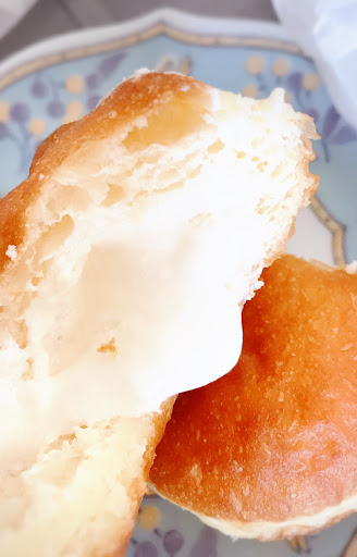 ・ホイップクリーム入りドーナツ とても柔らかめのトロっとしたクリームは 全くしつこくなく、ドーナツ生地との相性が ぴったり合わさっています。