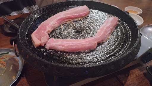 ①以前、よく韓国料理屋さんに行っていましたが、サムギョプサルはたいていお店の人が焼いて切ってくれました。こちらではハサミも渡してくれなくて長いお肉を持ってきただけで、後は煙が出たら焼いてくださいとだけ言われてビックリしました。 ハサミもくれないし、店員さんもそのまま奥に行ったままで来る気配がないので、呼び出してハサミをお願いしたら、トングやハサミやお玉が入ったグラスを持ってきました。お客さんも2組しかいなかったのに、忘れるか?とびっくりしました。