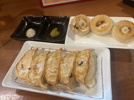 肉汁餃子、 まんじゅうのような形状で少し皮が厚いです。 箸を刺すと、その名の通り、肉汁がめちゃくちゃに溢れ出しますこれがめちゃくちゃウマいんですよね~ 餃子のタレにお店特製の辛味噌(食べるラー油的なやつ)をたっぷりつけて食べると、ハイボールがめちゃくちゃすすみます