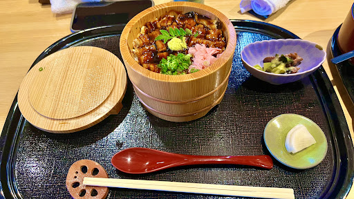 まずは優しいお出汁のにゅうめんが出されて召し上がります。 そしておひつに入った穴子めしが到着。 色は濃いですが全然胃もたれしない優しい味です! 食感もふわっふわでとても美味しいです! 真ん中のワサビを合わせながら食べると抜群!