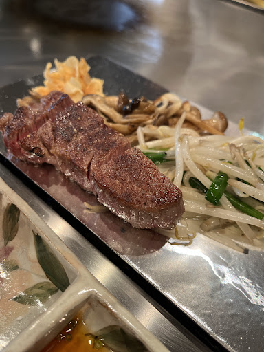 その横でお肉が密かにじっくり焼かれていきます。見るからに美味しそう。 後から鉄板の上に出てきた海鮮と野菜ががささっと焼かれて供されます。こちらも美味しい。 そちらを楽しんでいる間にメインのお肉も供されました。今まで食べたヒレ肉の中でも上位の柔らかさときめ細かさ。無茶苦茶美味しい。お味噌汁とご飯まで優しい味わい。
