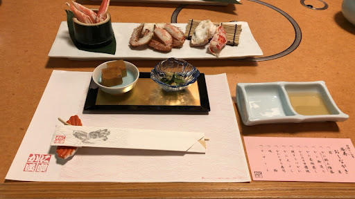コースは予約した 特選かに会席の庵寿で一人当たりほぼ一万円。 15年ぶりくらいにきましたが店内は非常にきれいで 出迎えやサービス、カニの品質は素晴らしかったです
