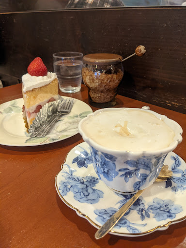 An old-school cafe near the Osaka Monorail Senri-chuo station. It is inside a building and there are no signs outside. The place inside is like a time capsule, we have old ladies still serving guests and the scene is rustic even with the seats and the table sugar. They have daily recommendations on which beans are good for that day, and with appropriate discount too. I got that and their apple pie. While I must say that the pie presentation and depth was lacking to me, the coffee is the direct inverse. The coffee was served in a teacup set that is probably older than me and the matching cutlery added to the experience. They also sell coffee beans and some cakes on the cashier area if you want something for takeout. It’s a good place for a conversation but not good for working with a laptop as there are signs that they want to avoid it. I agree as it...