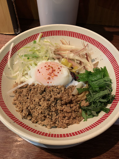 Read more夜9時頃入店。客は半分くらい。一推しはラーメンとのことだが、空腹なら肉盛り混ぜそばを勧められて、同意した。しまった、空腹の為着丼した時すぐ混ぜてしまい、写真に残せなかった、失敗だ。麺を食らうだけあってしっかりとした主張のある麺だった。具も含めて楽しめる。ただ麺とは所詮食べ易く量を感じさせないもので、物足りなさが残るものだが、そこを工夫して最後にライスを後から出して客の満足感を煽るやり方は、工夫されている。ただし、ご飯の大盛りがアレでは少ないかな。隣の人のラーメンも美味そうだったので、次回の楽しみとなった。値段としては、もう少し安くしてほしいかな。