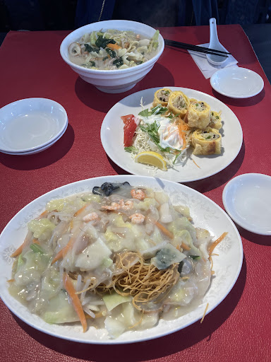 Read more20250503 初訪問。江坂の外れにあるお店だがひっきりなしにお客さんが入ってくる人気店。駐車場もあって非常に来やすい。店員さんは皆若くて礼儀正しくテキパキ働いてます。店の人柄が伺えます。家族客が多いのも頷ける。 さて本日は初めての訪問ということで、ちゃんぽんと皿うどんと卵春巻きをオーダー。ちゃんぽんは魚介の風味を感じるとんこつスープ。キャベツ、ほうれん草、にんじん、エビ、ちくわ、豚肉がたっぷり載ってます。麺は中太ストレートのちゃんぽん麺。野菜とスープと一緒に食べると、まぁおいしいこと。皿うどんはちゃんぽんと同じく、キャベツ、ほうれん草、にんじん、ちくわ、豚肉が優しい餡となって揚げそばに掛かってます。香ばしい揚げそばと優しい餡で夢中で食べ進めちゃうやつ。 卵春巻きは、しっかり下味が付いた具を薄焼き卵で巻いて揚げたやつ。普通の春巻きに比べ、卵の風味はまぁおいしい酢醤油で食べるとさらに最高。 何よりも全体的にお値段が安い!こんなにおいしいのにお手頃価格に食べれるなんて。またリピートしちゃいそうです。 気...