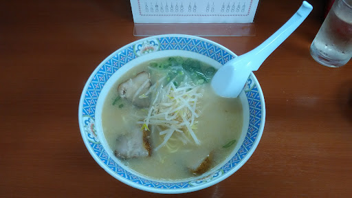 朝からタイムズに駐車して客先に往訪し、帰社前に昼食が取れる場所を探してたら発見しました。 11:30頃に到着、外から店内を除くと飛び飛びで3席が空いてたのですが、先の1組(家族で3人)が待ってたのでその後ろに並びました。 20分程で2名が出て行き、前の1組(3人)が中に入ったので、店内を再確認すると飛び飛びで2席空きが見え、此方から年配女性店員さんに声を掛けて着席、しばらくしても注文を取りに来ないので此方から声を掛けて半チャーハンのラーメンセットを注文。 ラーメンが先に到着し、最後のスープを飲んでる時(猫舌で食べるのは遅い方)にようやく半チャーハンが到着。 ラーメンはライトトンコツって感じのあっさりスープ、チャーハンはシンプルな味の中に焦げの苦みが少々、他のクチコミを見てる限りではかなり好みが分れるようですね。
