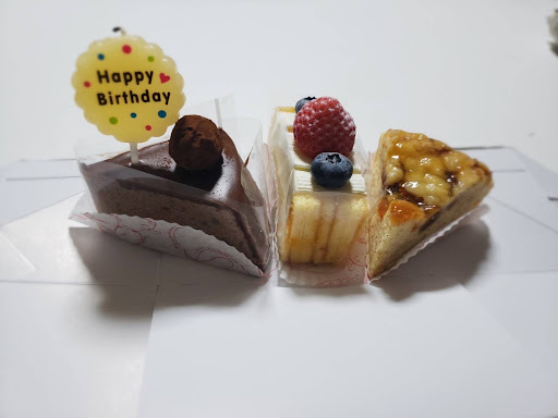 Read moreこの度は息子の誕生日ケーキは寸前に予約する事になりましたが間に合う様に焼いて下さいました。今年は家族揃って早めのクリスマス会を致しますがケーキを楽しみにしています 味はなんといっても元、神戸六甲アイランドPlazaホテルパティシエの腕は落ちていません 豊中ロマンスロード沿いなどにもお届けにあがってらして宝塚ホテルにも確か出入りしてらしたので私達は大好きな味だしご夫婦も素敵な方です