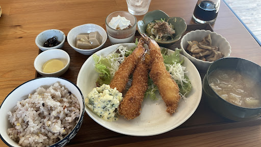 Read more以前から一度食べに行ってみたいと思っていた「Hale Cafe」さんに行ってきました。ときわ台の住宅街の普通の家をDIYしたおうちカフェ。ランチは週替わりで1メニューだけ1日限定12食だそうで、前日に電話で予約をいたしました。 私が訪れた週は「エビフライ」でした。エビフライは3尾、お米は二十穀米で、他にも小鉢とお味噌汁も。さらに黒糖プリンまでついていてこれで1,100円はお得感があります。 ご自宅を改装しているから提供できるお値段でしょうか。おいしくいただきました。 車の駐車スペースは1台分だけあり、その日はバイクとめることができました。 YouTubeでも紹介していますので「くうねるはしる」「Hale...