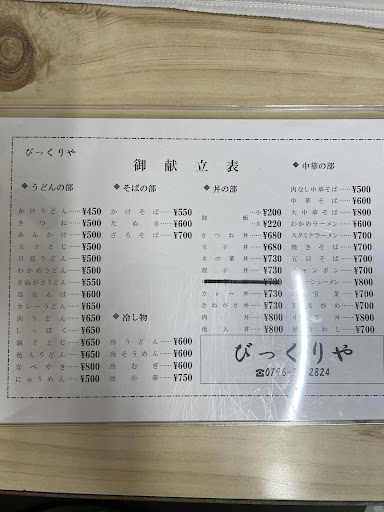 Read more城崎温泉、マリンワールドに遊びに行く時に調べたら昭和の雰囲気満載のこちら豊岡びっくりやさんに辿り着きました。店前に車で止まると店内の電気がついていたので中に入り声掛けすると奥の部屋からお母さんらしき方が出て来られました。10時30分位に到着しましたが快く対応していただきました。駐車場は店から見て左手50m先の右手に1台のみ止めれます。他の方のクチコミにもありますがお母さんはとても気さくで人の良さが良く伝わってきました。注文は相方がちゃんぽん麺(700円税込)、私がカレーうどん大(750円税込)を注文し約5分程で共に着丼、ウワサ通りムチャ早い😊味は2品共にムチャ旨でした。話を聞くと旦那さんが25年前に亡くなられてお一人で頑張ってるみたいで近くに住んでる娘さん2人がお手伝いに来てくれるみたいでした。SNSの情報でお客さんも多い時は行列みたいです。営業日や時間は電話で確認されてから行かれた方が無難です。営業される日はだいたい10時30分か11時オープンで16時クローズでやられてるみたいです。休みは...