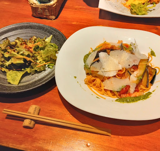 Read more気軽にランチに 気軽にランチに来られる方で混雑しています。 実ははじめての訪問。結構期待していました。 ランチがお得で、大盛りも無料とかいいですね。パンも食べ放題だしね。 さて、この日はパンが売り切れ(12時だったけど・・)でガーリックバターのバケット。 和風とペペロンチーノの2種だったので、トマト好きな私は単品を注文。 アマトリチャーナ。相方は夏野菜のペペロンチーノ。 さて、結構待ちます、ランチのサラダは上品です、グルメで薄味好きな相方にはちょっと塩辛いらしい。 アマトリチャーナ、淡路の玉ねぎの美味しさをとの事らしいですが、トマトと玉ねぎの味を活かすよりも塩辛いな。 もうちょっと塩を抑えて、素材の味を生かしてもよかったかな、私自身もちょこっと野菜を作っているので、野菜の旨みを全面に出すという触れ込みは、、、もうちょっと達成していないかなと。。 でも、トータルで美味しいです、この辺のお店では十分に合格点だと思います。 問題はペペロンチーノ。これはオイルが乳化しておらず、ただの塩焼きそばになっていました。 イタリアンの基本にして難しい料理、これで判断されると、、やはり飲み屋の域かと思ってしまいました。 京阪神のイタリアンを沢山食べたので、ハードルが上がってしまったのかな。...